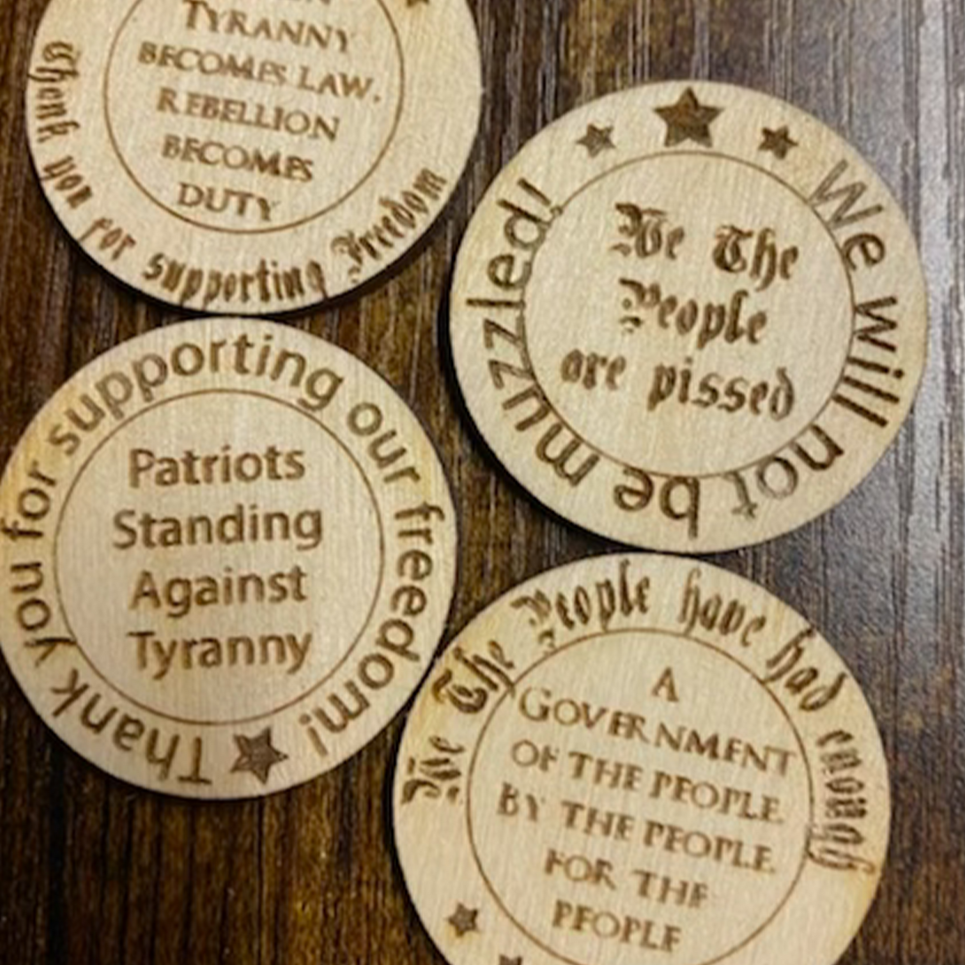 We recommend that you leave one or two behind when you tip your server, your bartender - or even put them in with change at the grocery store. Anywhere that refuses to make you mask up! These are a great way to spread the word that We The People won't be muzzled any longer.