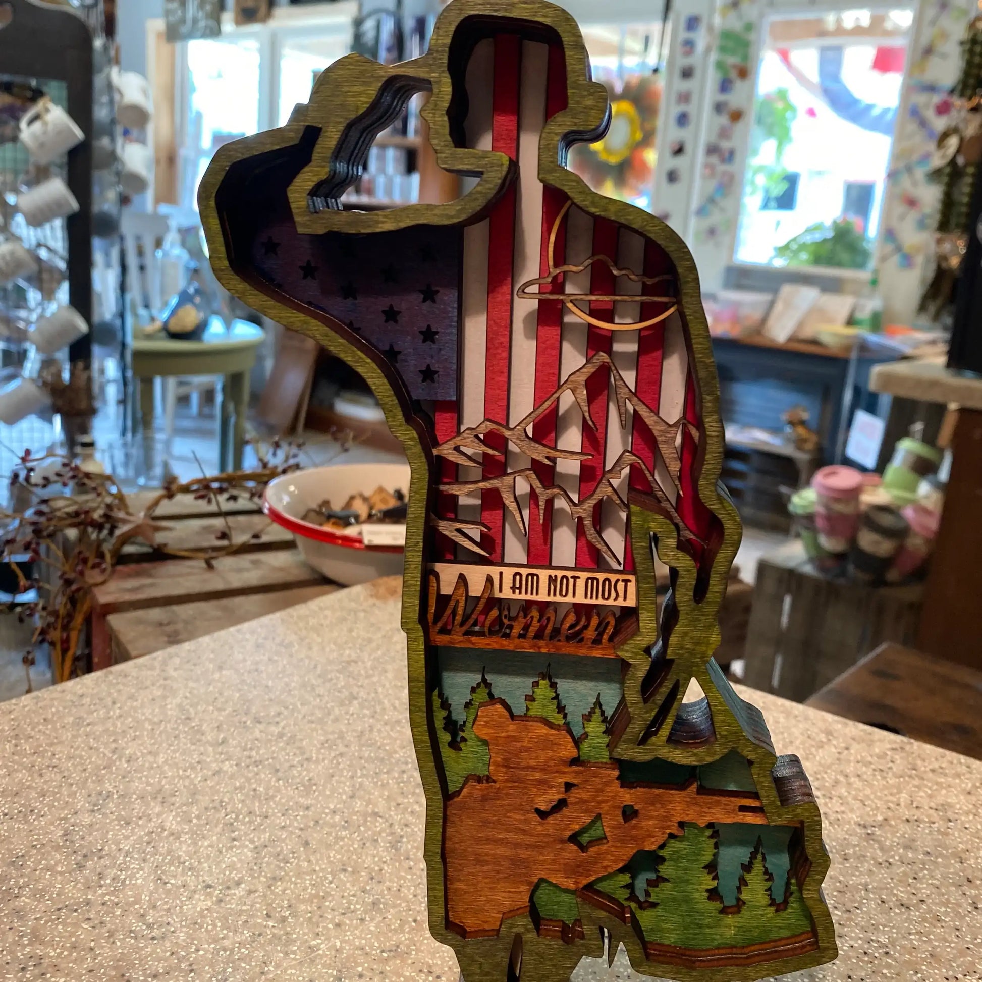 Introducing the "I Am Not Most Women" Female Soldier Stacked Scene, a patriotic tribute to our female forces! This 10-inch tall scene (complete with 5.5 inches wide and 1 inch thick) stands tall in homage to the brave ladies who served and continue to serve us proudly. Salute our women soldiers today! 🇺🇸