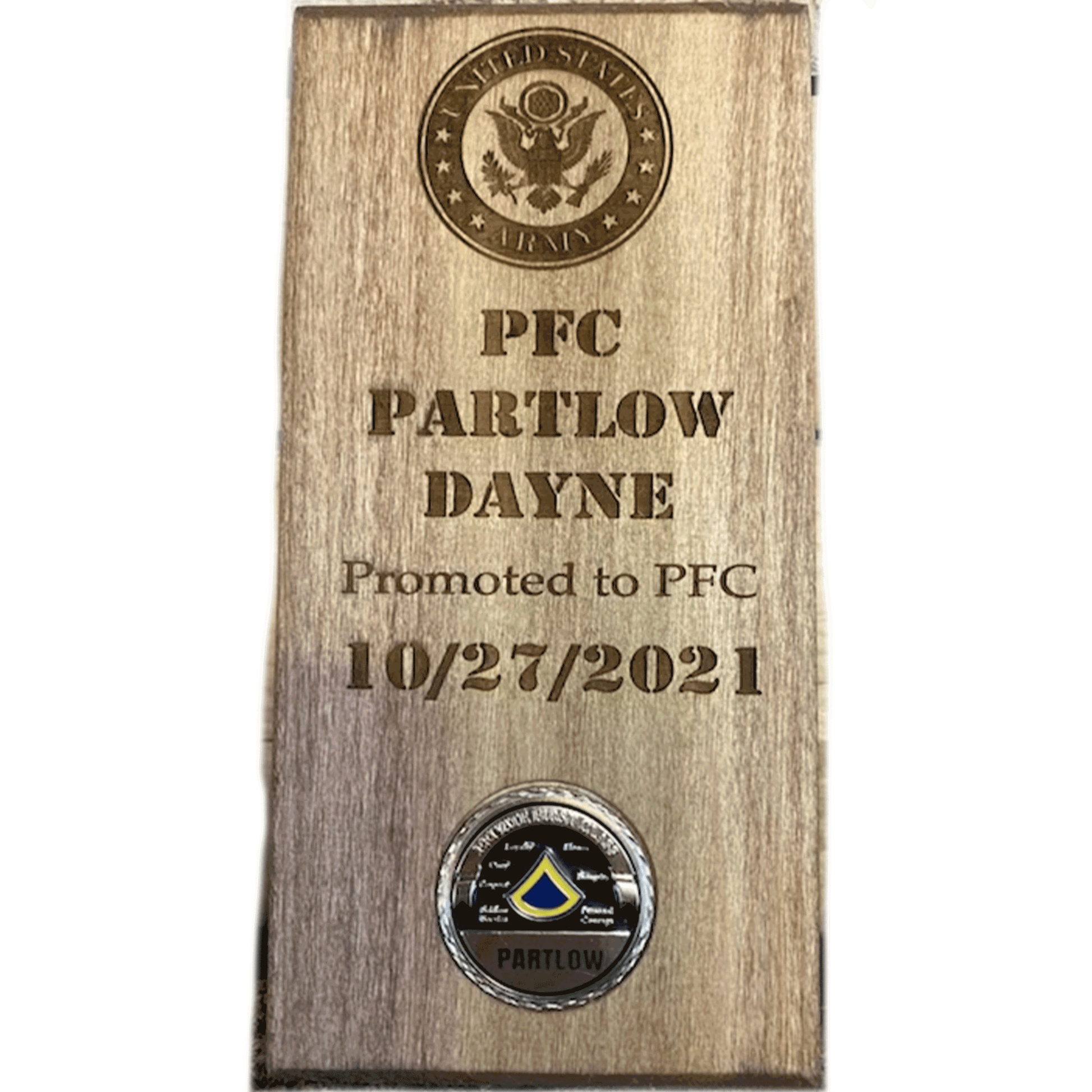 Make your soldier's plaque really stand out by adding an etched coin for the new rank.